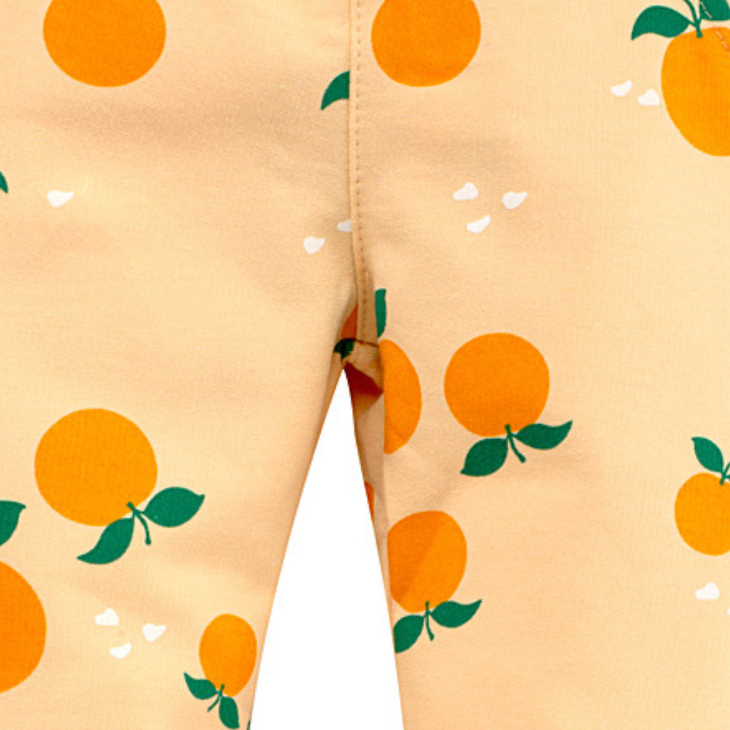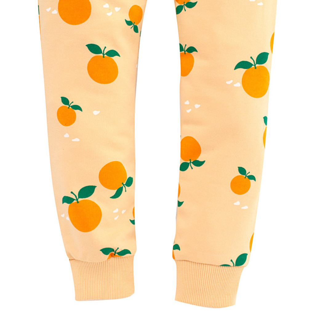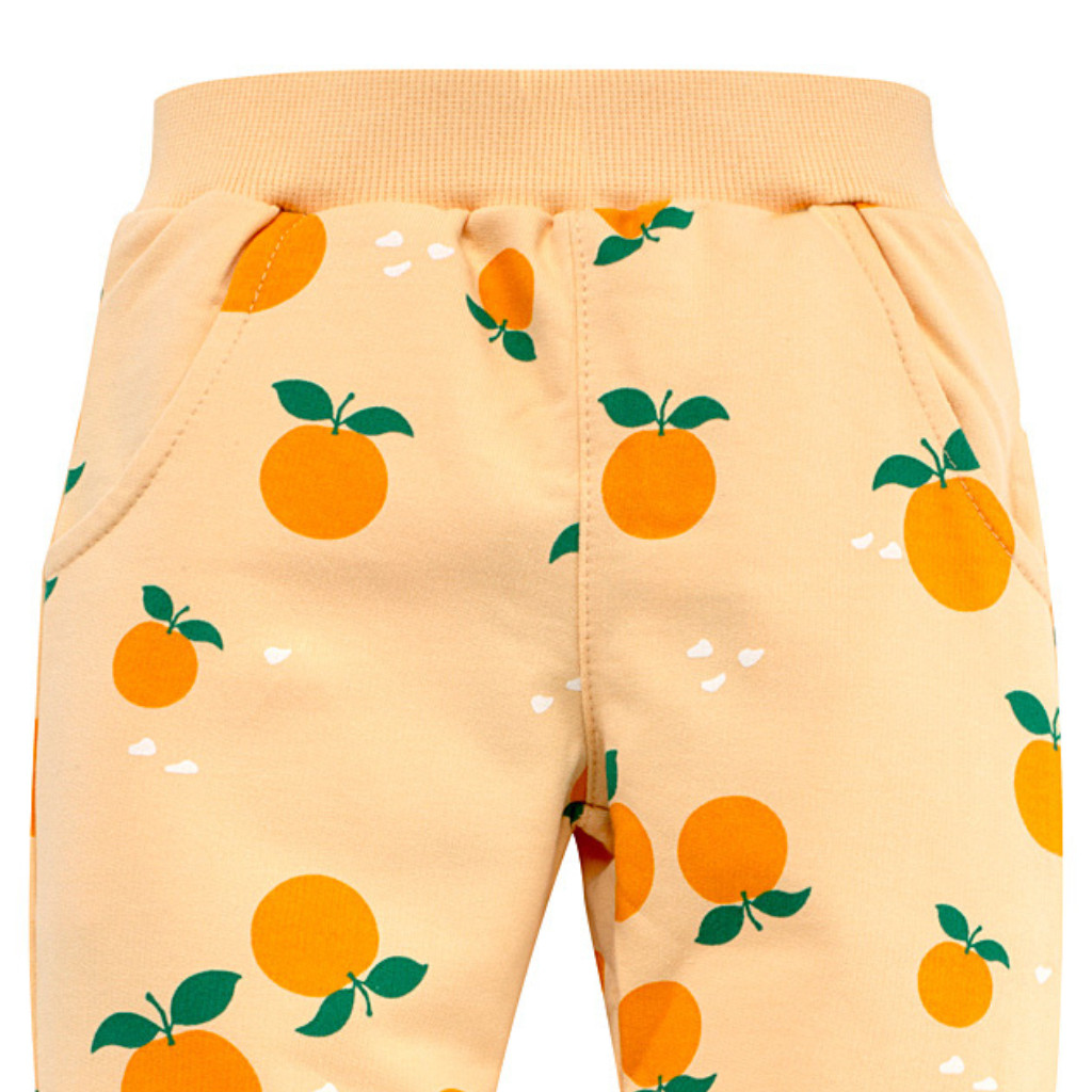 A vidám narancsminta játékos megjelenést kölcsönöz, amely könnyen kombinálható más ruhadarabokkal. A nadrágon elhelyezett zsebek nemcsak díszítőelemek, hanem apró kincsek tárolására is alkalmasak, ami külön öröm a nagyobb babák számára.