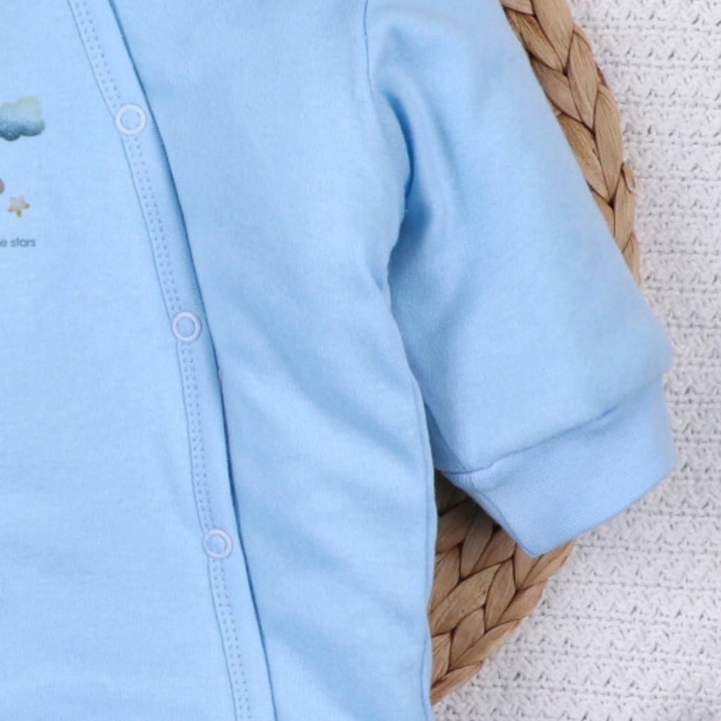 A teljes hosszában patentos záródás gyors és egyszerű öltöztetést tesz lehetővé, ami különösen fontos a mindennapok során. A nickelmentes patentok biztonságosak és nem irritálják a baba bőrét.