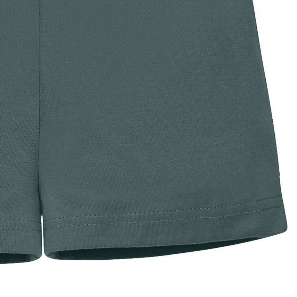 Gumis derekú, zöld színű kisfiú rövidnadrág.
