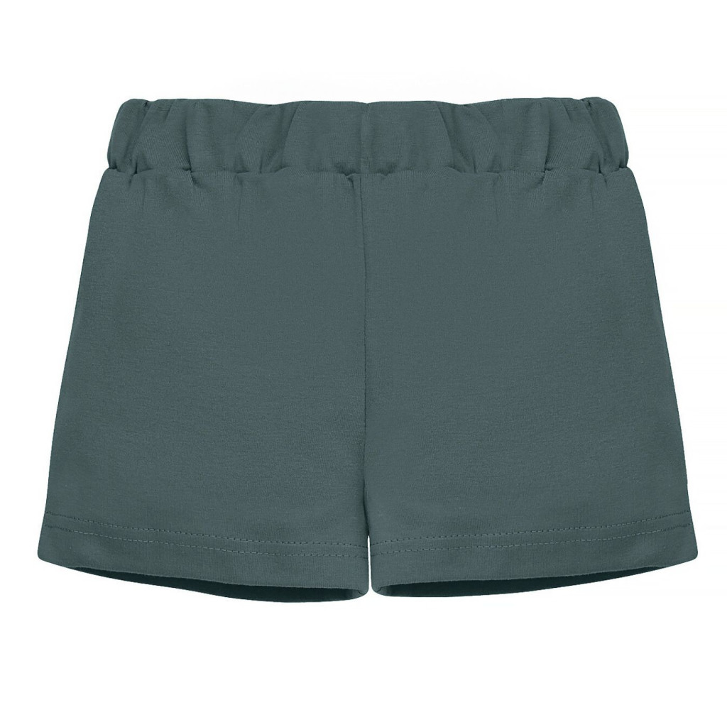 Gumis derekú, zöld színű kisfiú rövidnadrág.
