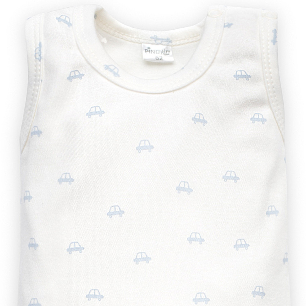 Pinokio - Lovely Day kisfiú ujjatlan body autó ekrü 68 prémium minőségű babaruha, amely kényelmes és praktikus választás a mindennapokban. A puha pamut anyag és az átgondolt szabás segíti, hogy a baba egész nap komfortosan érezze magát.