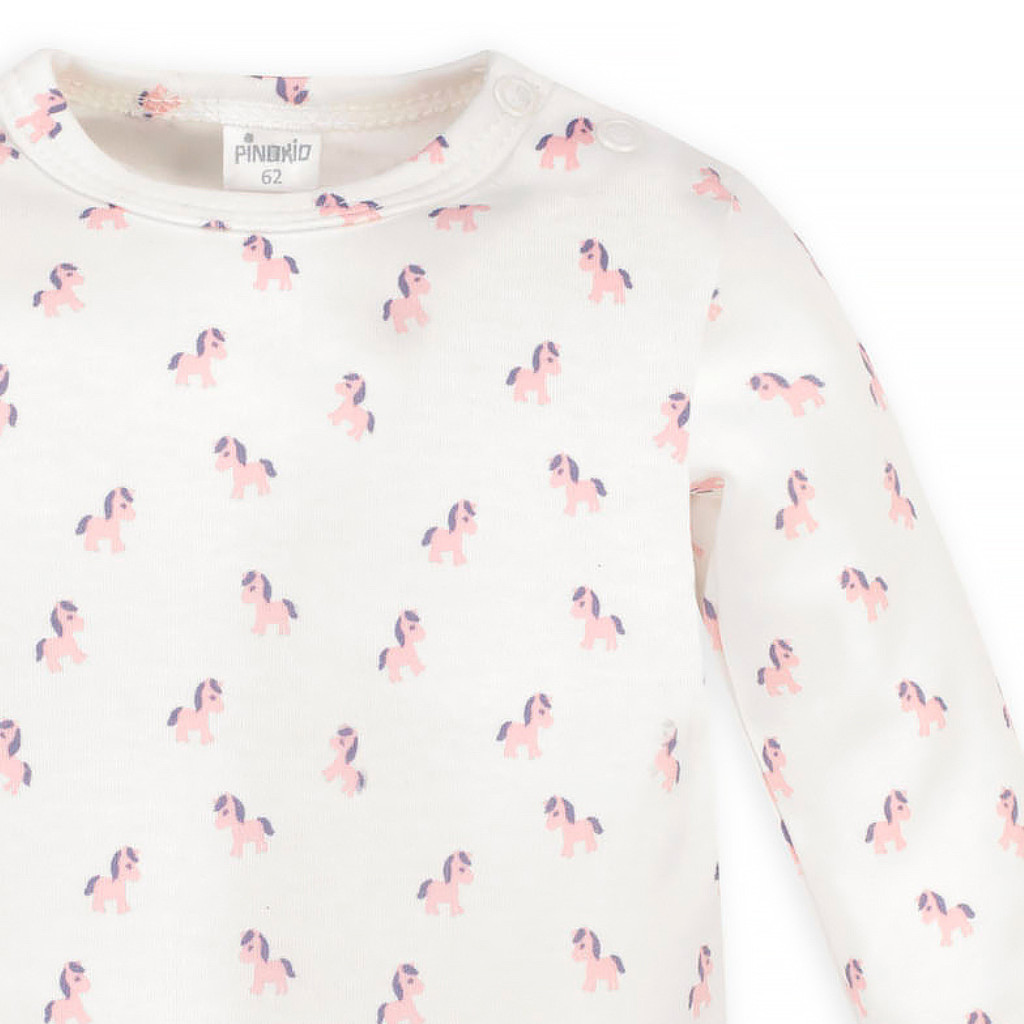A bájos póni minta és az ekrü szín kombinációja egyedi és vonzó megjelenést kölcsönöz a bodynak, amely tökéletes választás lehet bármilyen alkalomra, legyen az egy családi összejövetel vagy egy baráti látogatás.