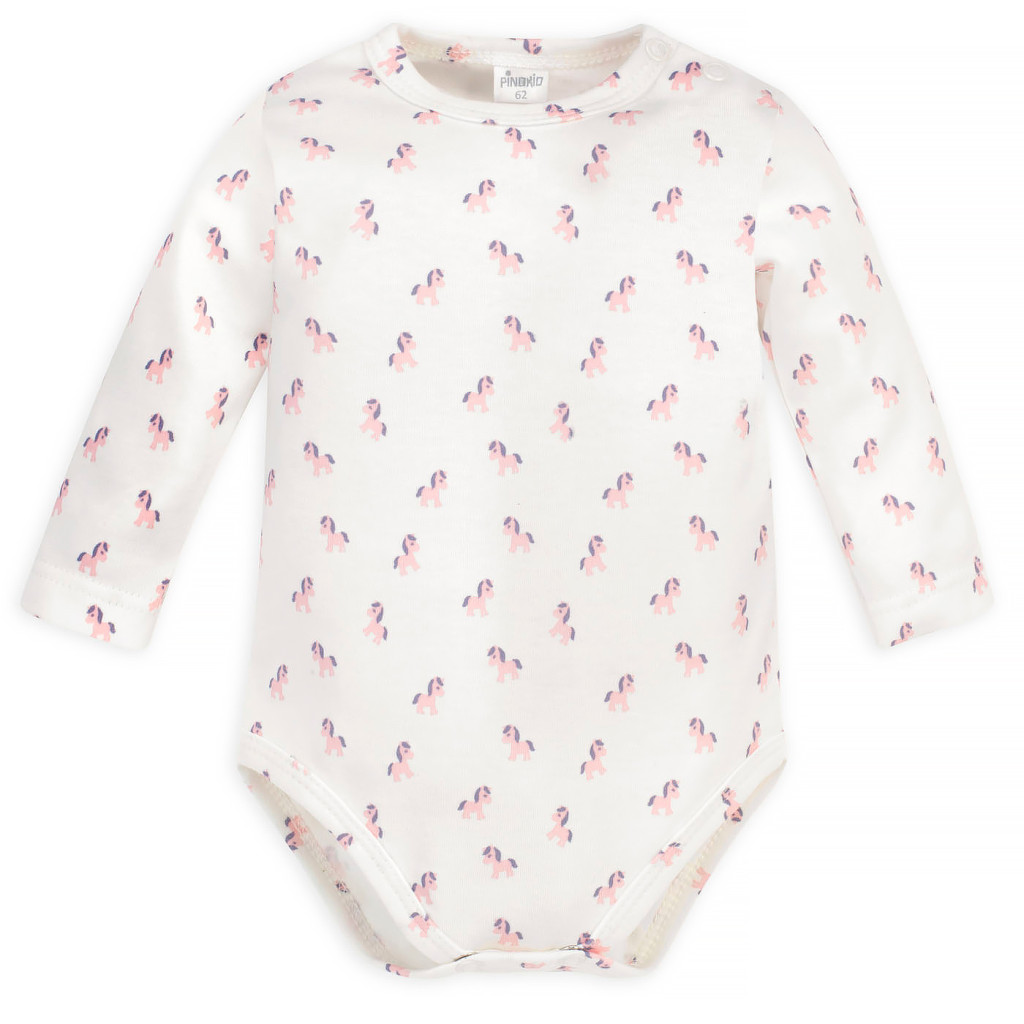 A Lovely Day kislány body egy stílusos és kényelmes ruhadarab, amelyet kifejezetten a legkisebbek számára terveztek. Az ekrü szín harmonikusan illeszkedik bármilyen kislány ruhatárába, míg a vidám póni minta játékos és bájos megjelenést kölcsönöz.