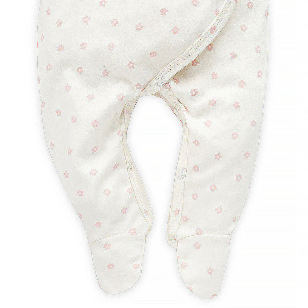 A Lovely Day patentos kislány rugdalózó kiváló minőségű pamutból készült, amely puha tapintású és gyengéd a baba bőréhez. A rugdalózó ekrü színe elegánsan visszafogott, míg a finom virágminták nőies és bájos megjelenést biztosítanak.