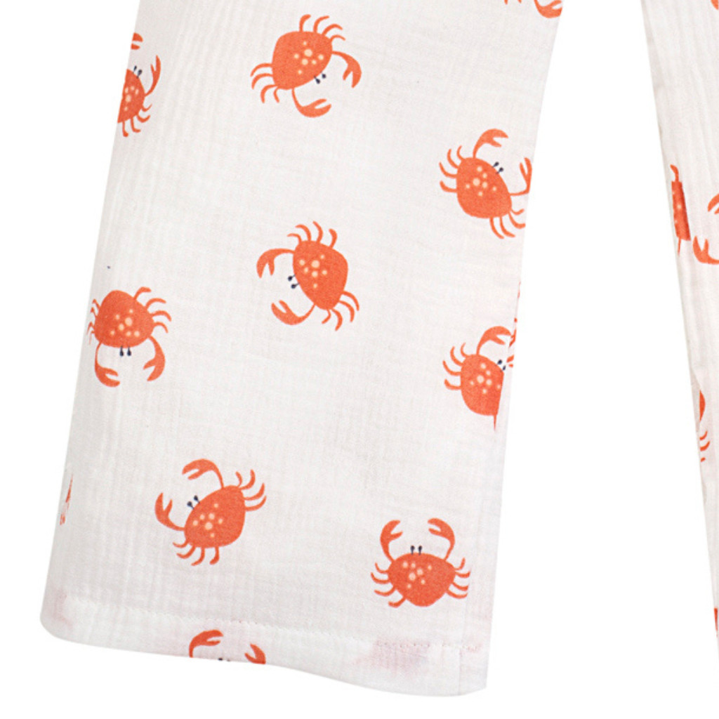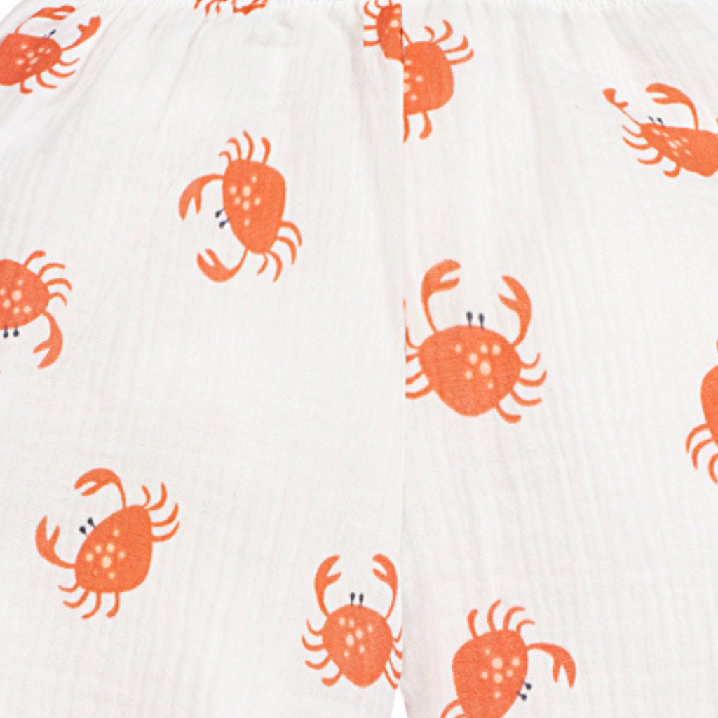 Kiváló minőségű, lenge, laza nyári kislány nadrág, 100% pamut anyagból, aranyos rákocska mintával.