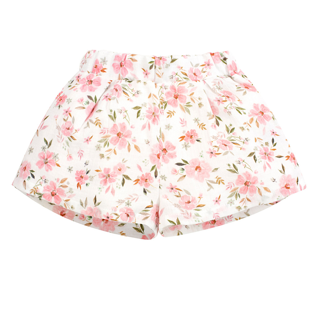 Kiváló minőségű, jól szellőző, lenge kislány rövidnadrág, gyönyörű virágmintával. Tökéletes választás a forró nyári napokra, nyaralásra, forózásra.