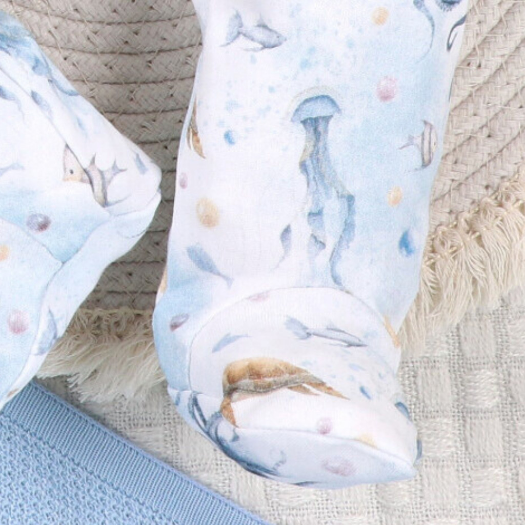 A Sea of Joy talpas nadrág kifejezetten a baba életének első hónapjaira készült. Praktikus kialakításának köszönhetően könnyen feladható és nem szorít, így a baba szabadon mozoghat benne. A talpas kialakítás melegen tartja a lábfejet, miközben kényelmes és biztonságos viseletet biztosít.