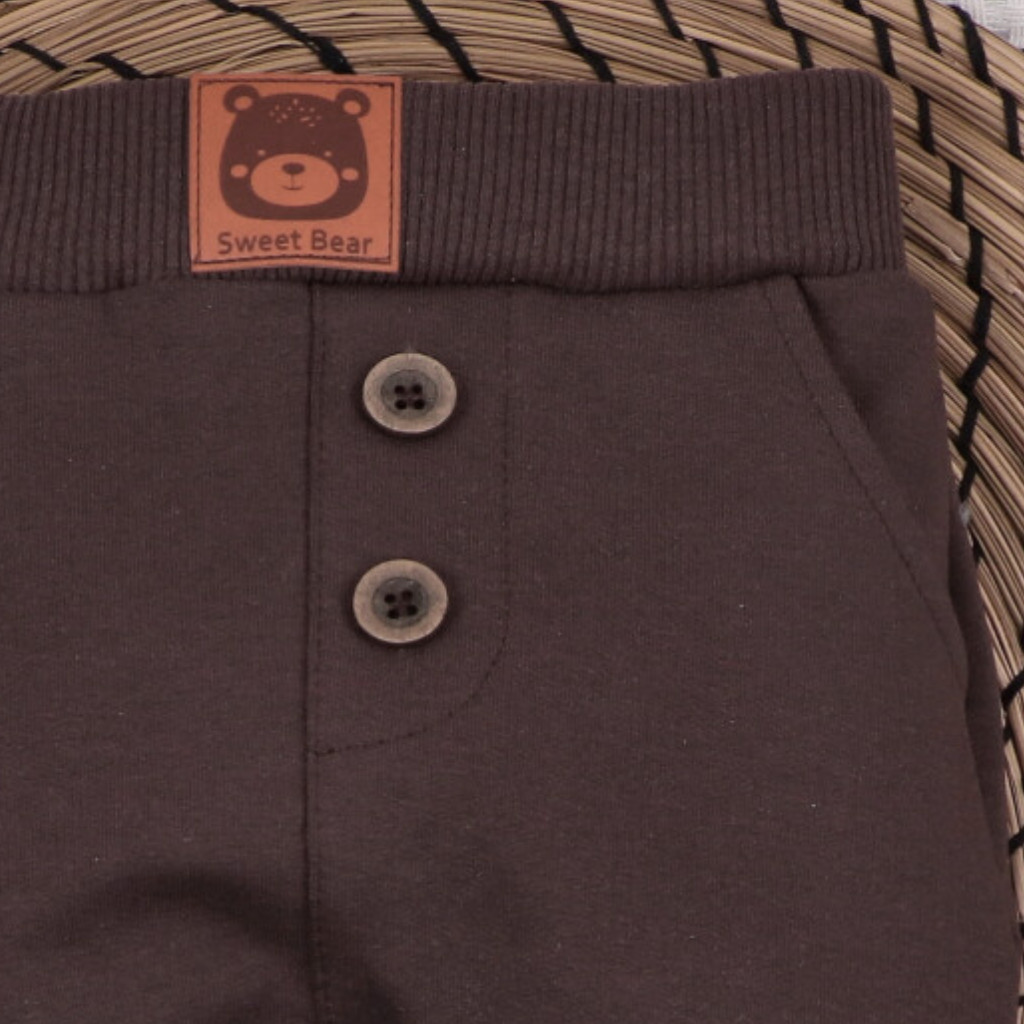 A minőségi pamut kötött anyag biztosítja, hogy a nadrág többszöri mosás után is megőrizze formáját és színét. A rugalmas derékrész kényelmes illeszkedést biztosít a baba számára.