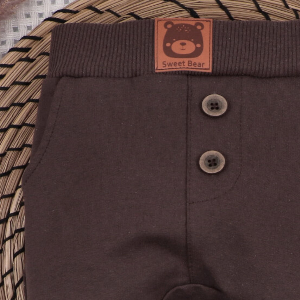 A minőségi pamut kötött anyag biztosítja, hogy a nadrág többszöri mosás után is megőrizze formáját és színét. A rugalmas derékrész kényelmes illeszkedést biztosít a baba számára.
