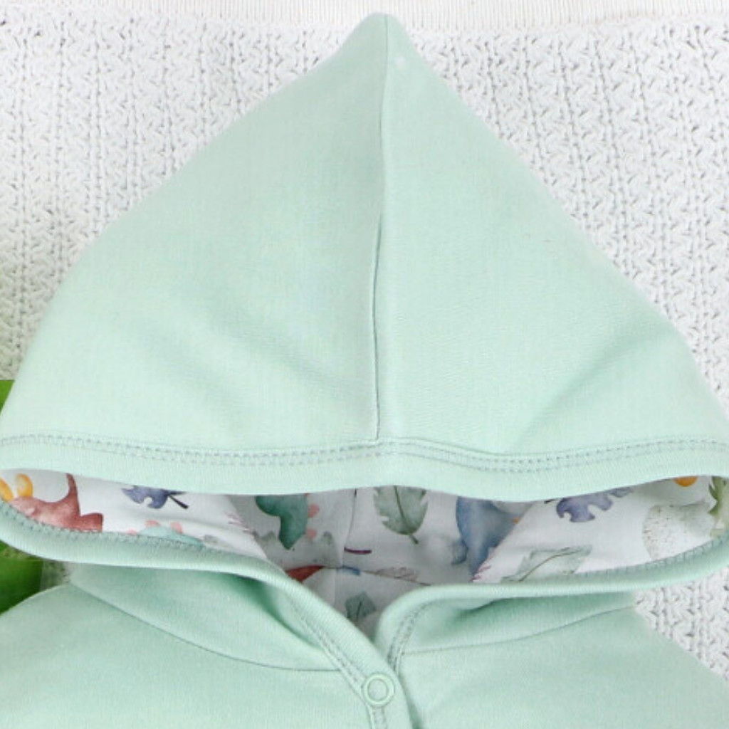 A NINI Dino Explorer kapucnis baba pulóver ideális választás a kisfiúk mindennapi ruhatárába. A puha pamutanyag és a kényelmes szabás lehetővé teszi, hogy a baba szabadon mozoghasson játék vagy séta közben. A letisztult menta szín és a kapucnis kialakítás modern, sportos megjelenést ad a ruhadarabnak.