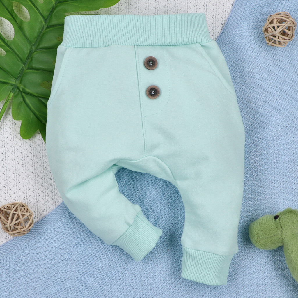 A NINI Dino Explorer baba nadrág tökéletes választás a kisfiúk mindennapi ruhatárába. A kényelmes szabás és a puha pamutanyag lehetővé teszi, hogy a baba szabadon mozoghasson játék vagy pihenés közben. A letisztult menta szín és a dekoratív gombok stílusos megjelenést adnak a ruhadarabnak.