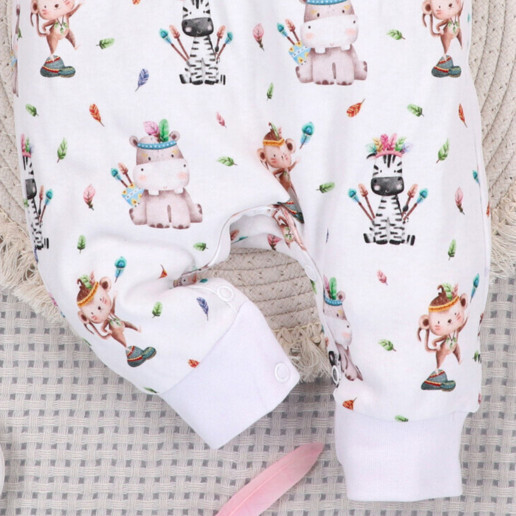 A NINI Happy Animals baba rugdalózó kényelmes és praktikus viselet a babák mindennapjaira. A 100% organikus pamut puha, légáteresztő és kíméletes az érzékeny bababőrhöz, így maximális komfortot biztosít egész nap. A vidám állatos minták különleges megjelenést adnak a ruhadarabnak, miközben a praktikus patentos kialakítás megkönnyíti az öltöztetést és a pelenkázást. Tökéletes választás egy baba bodyval vagy egy baba nadrággal kombinálva. A prémium minőségű, Lengyelországban készült babaruha tartós, és sok mosás után is megőrzi formáját.