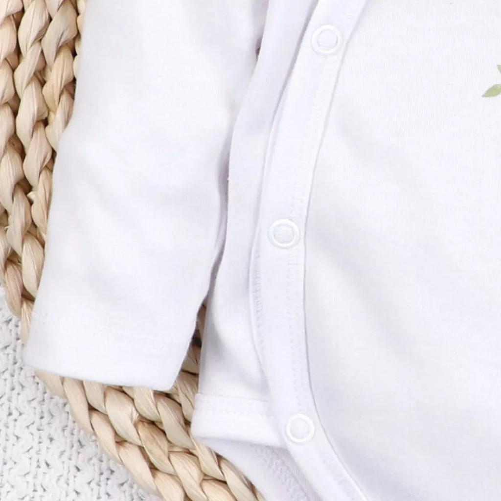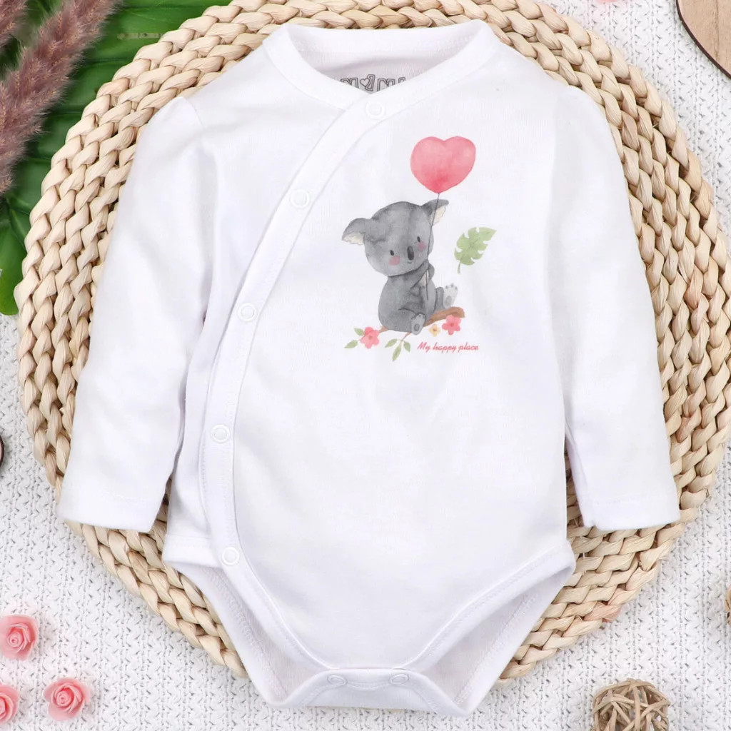 A hosszú ujjú átlapolós body nagy előnye, hogy nem kell a baba fején áthúzni, így az öltöztetés gyorsabb és kényelmesebb.