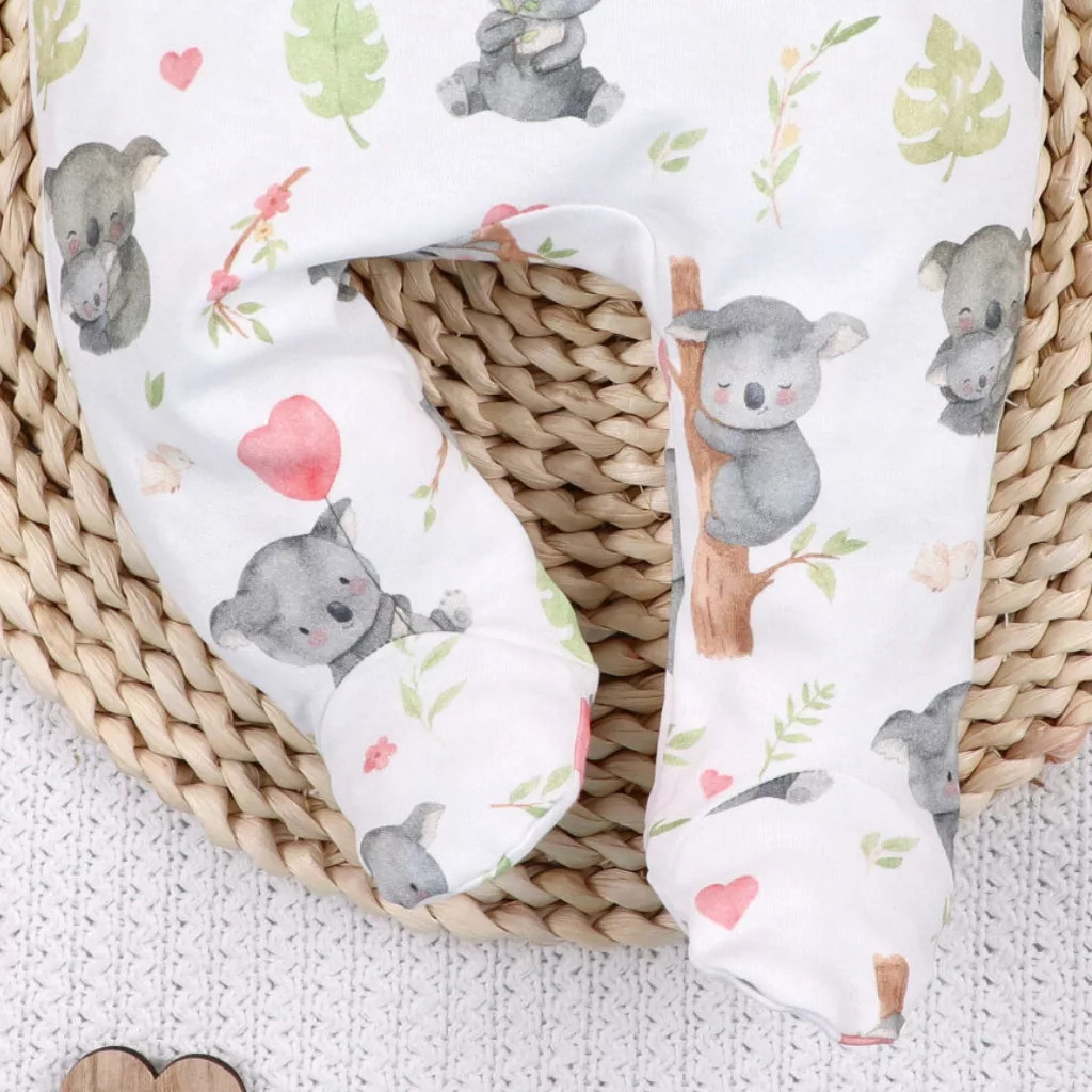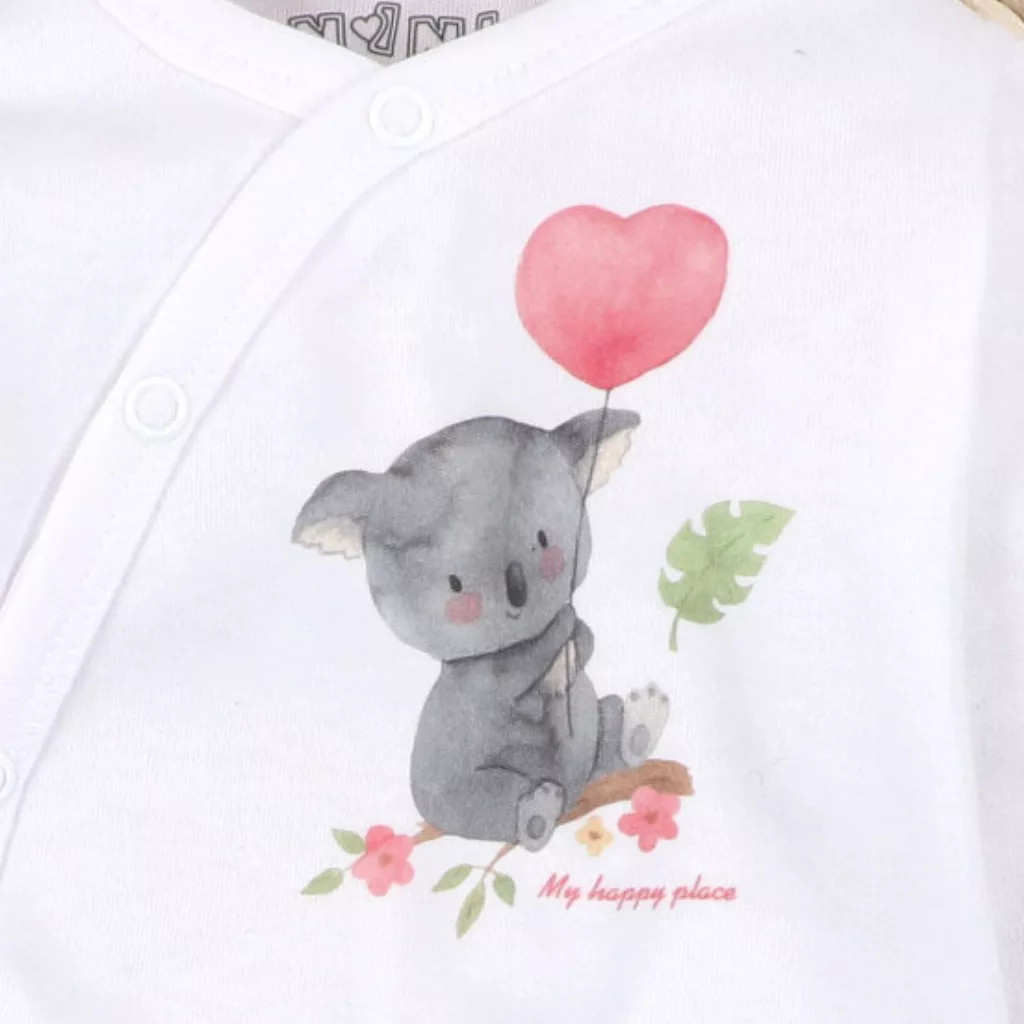 A Nini Koala kétrészes baba együttes kényelmes és praktikus választás a mindennapokra. A hosszú ujjú átlapolós body és a gumis derekú lábfejes nadrág együtt biztosítják a baba szabad mozgását. A 100% pamut anyag gyengéd a bőrhöz, a koalás minta pedig igazán szerethető megjelenést ad.