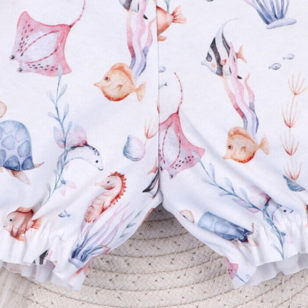 A NINI Underwater World baba rövidnadrág tökéletes választás a melegebb napokra. A vidám tengeri minták és a 100% organikus pamut kombinációja egyszerre biztosít kényelmet, légáteresztést és természetes puhaságot a babák számára.