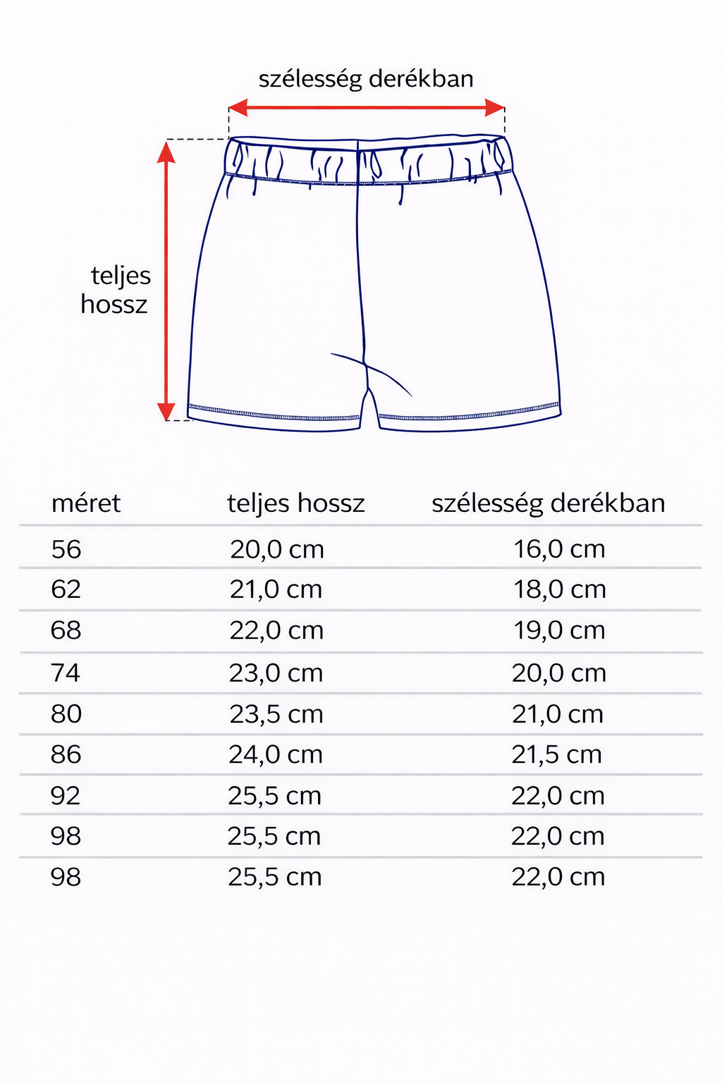A rövidnadrág könnyű szabása és puha anyaga szabad mozgást biztosít a babának. Ideális viselet játékhoz, sétához vagy otthoni használatra a nyári hónapokban.