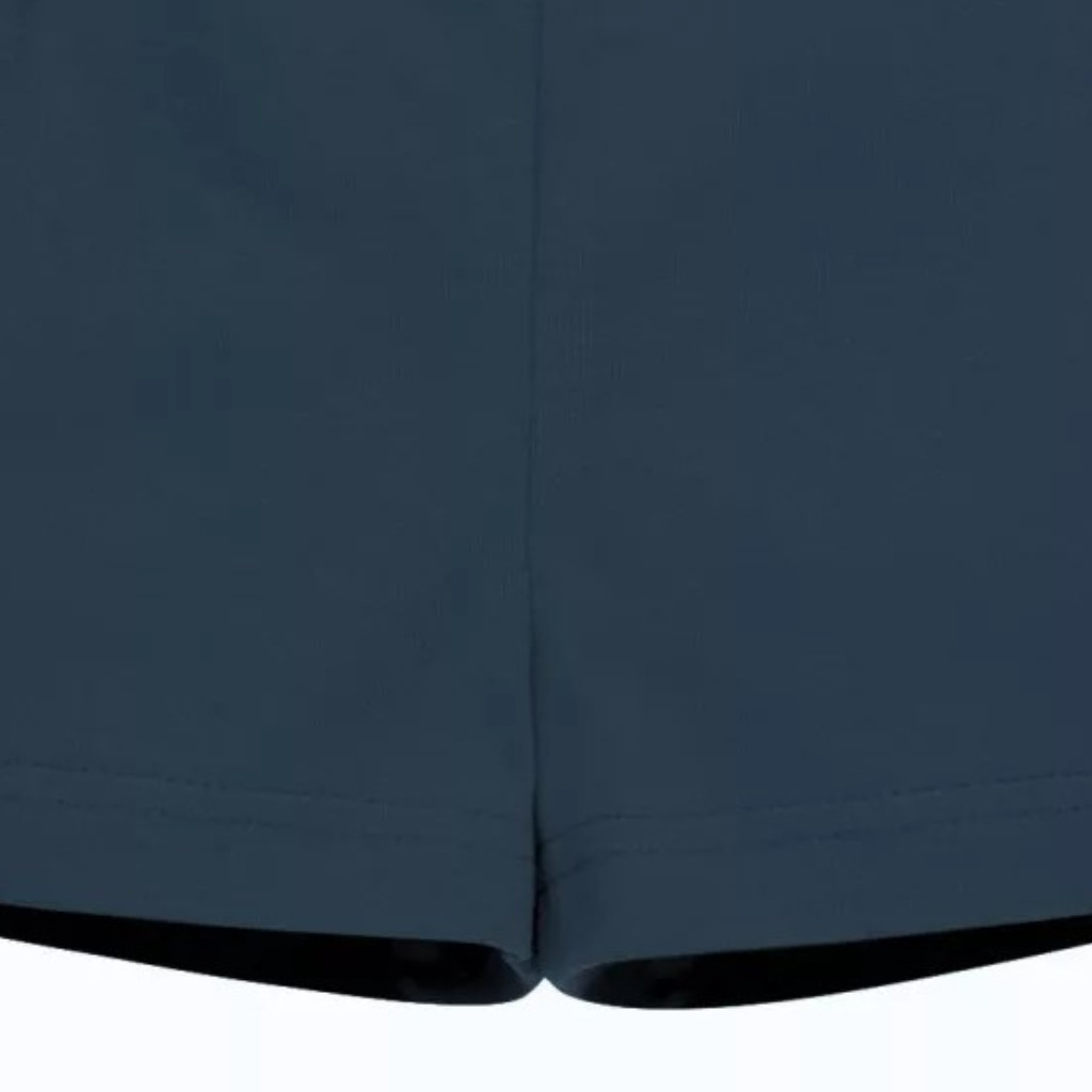 Sötétkék, gumis derekú fiú rövidnadrág, kiváló minőségű pamut anyagból, elasztán hozzáadásával.