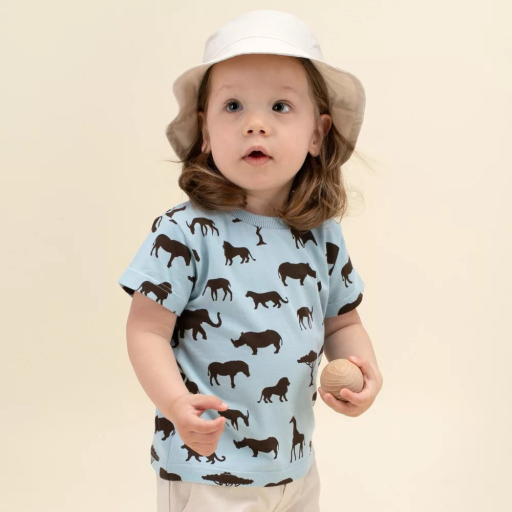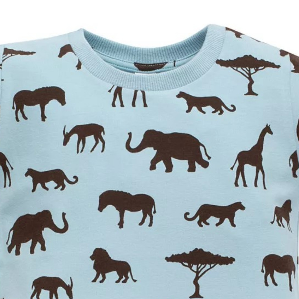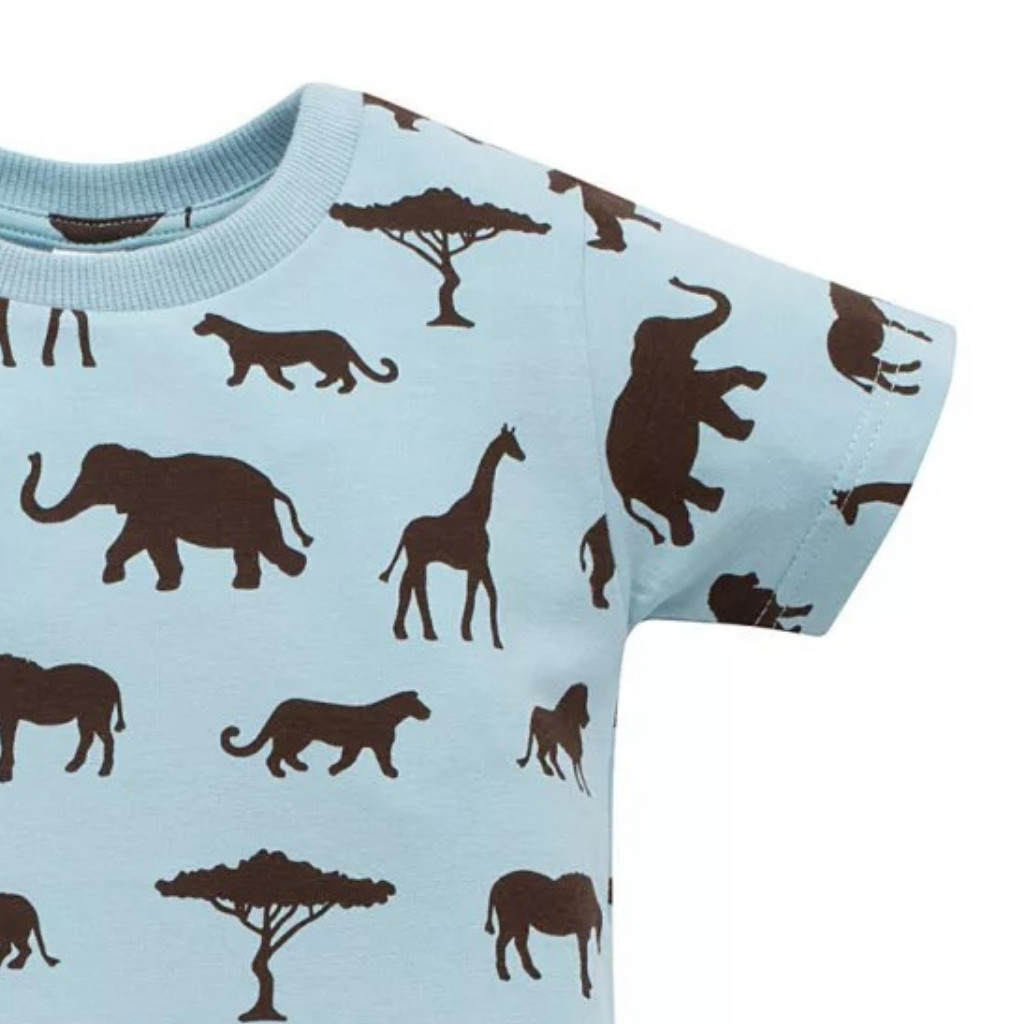 Pinokio - Safari kisfiú rövid ujjú póló állatok kék 110 prémium minőségű babaruha, amely kényelmes és praktikus választás a mindennapokban. A puha pamut anyag és az átgondolt szabás segíti, hogy a baba egész nap komfortosan érezze magát.