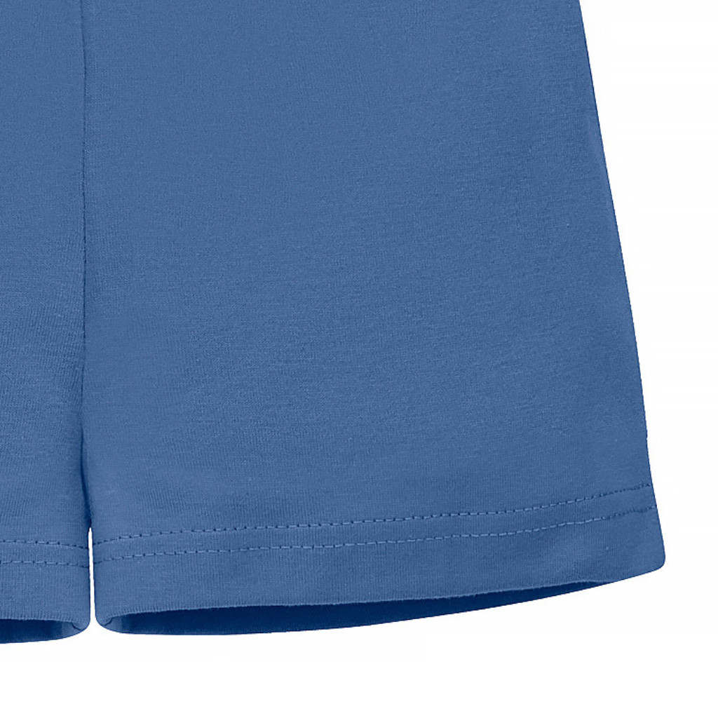 Gumis derekú, kék kisfiú rövidnadrág kiváló minőségű pamut anyagból, elasztán hozzáadásával a megfelelő rugalmasságért.
