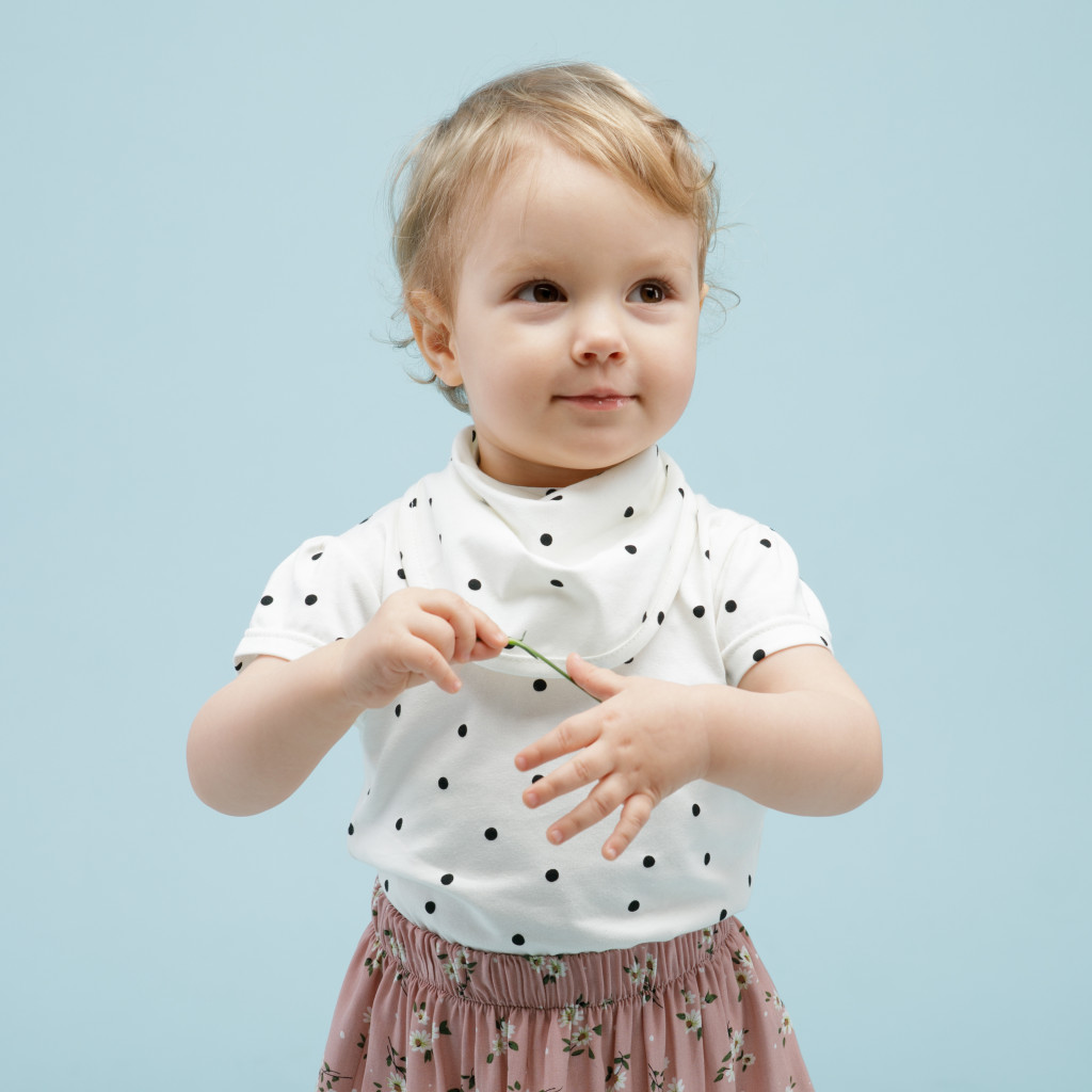 Szín: Ekrü pöttyökkel – finom és időtálló minta, amely könnyen kombinálható más ruhadarabokkal.