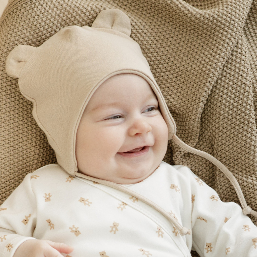 Pinokio - Lovely Day uniszex megkötős fülecskés baba sapka bézs 68
