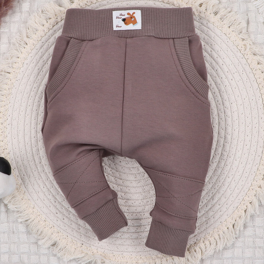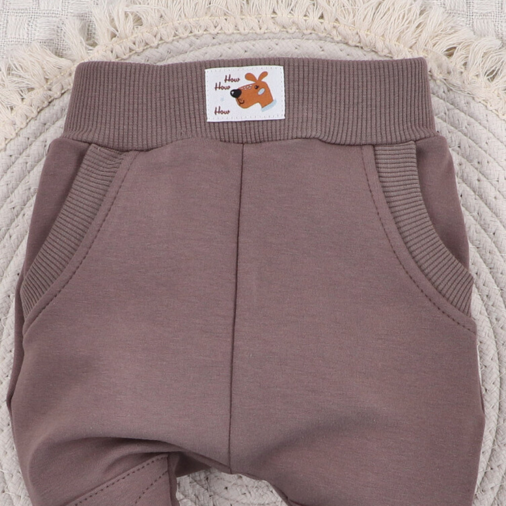A nadrág rugalmas, gumis derekú kialakítású, amely nem szorítja a baba pocakját, mégis biztosan a helyén marad. A body átlapolós megoldása megkönnyíti az öltöztetést, különösen a legkisebbeknél.