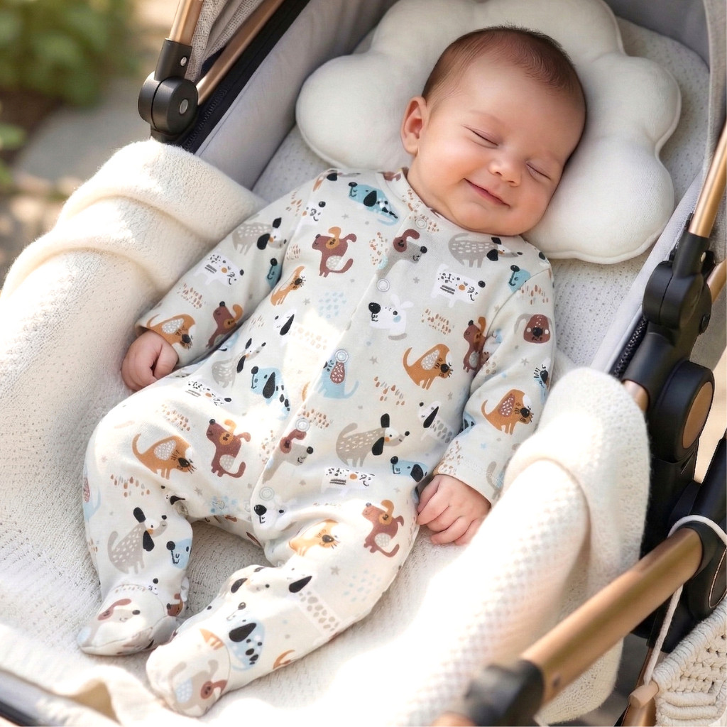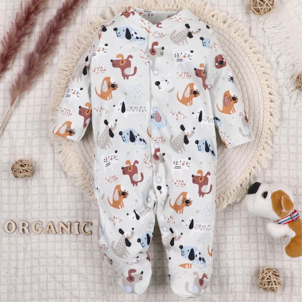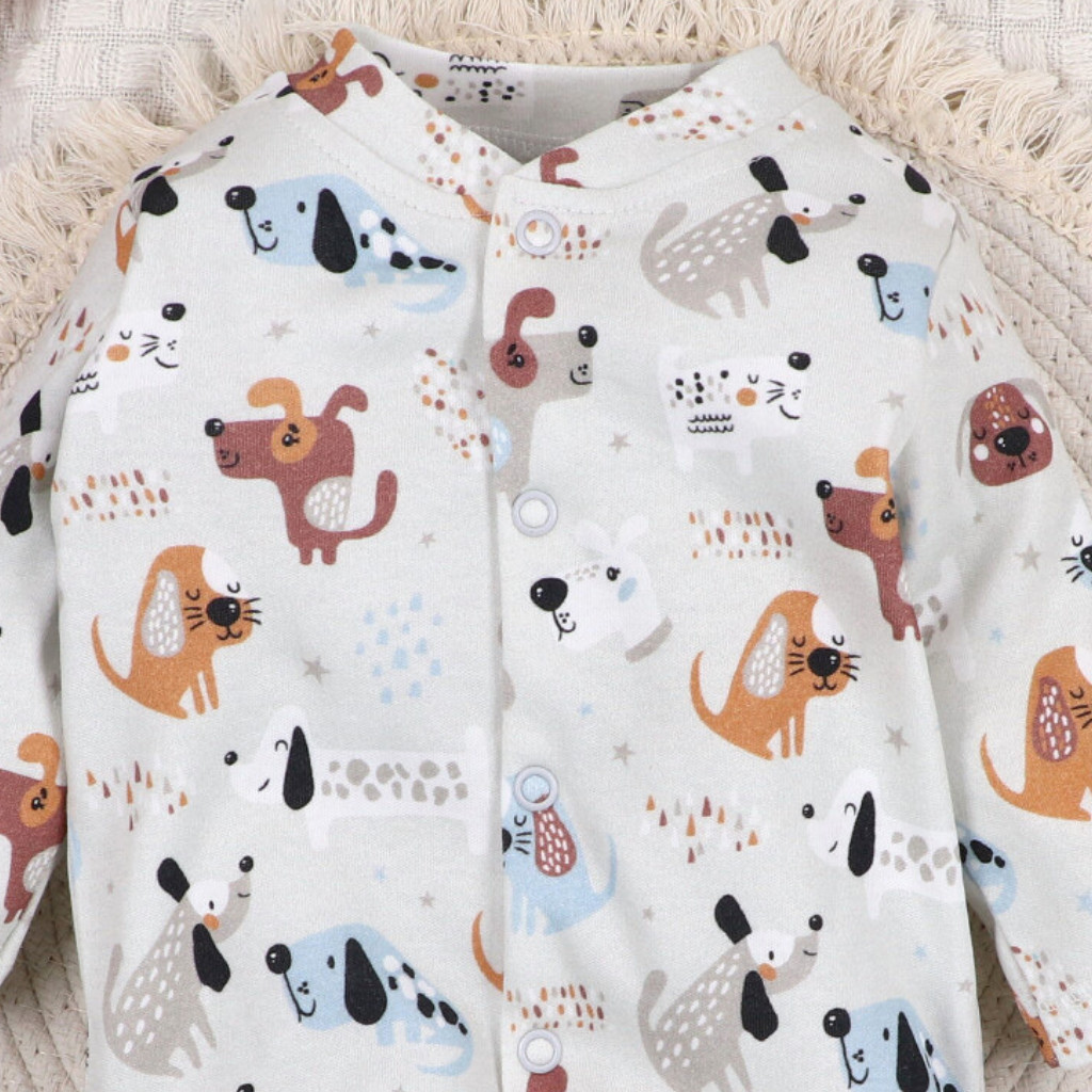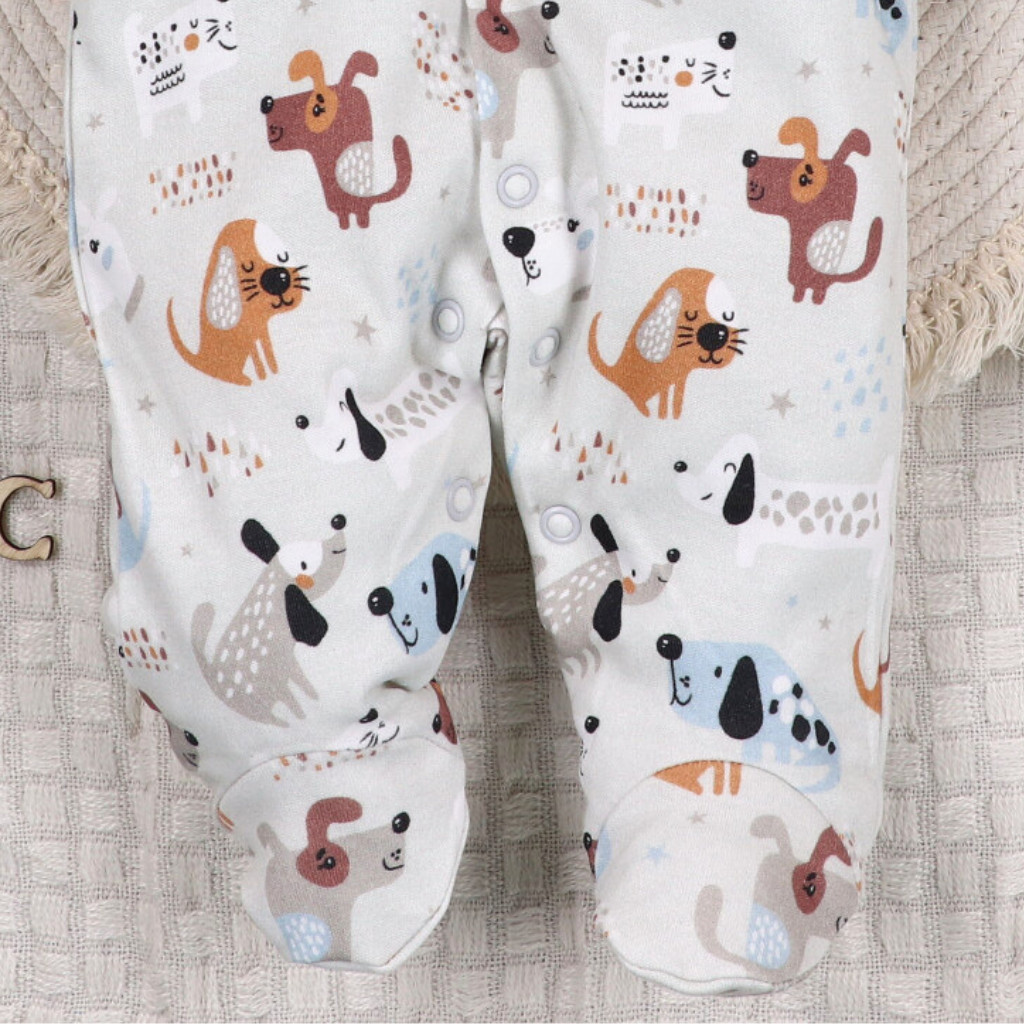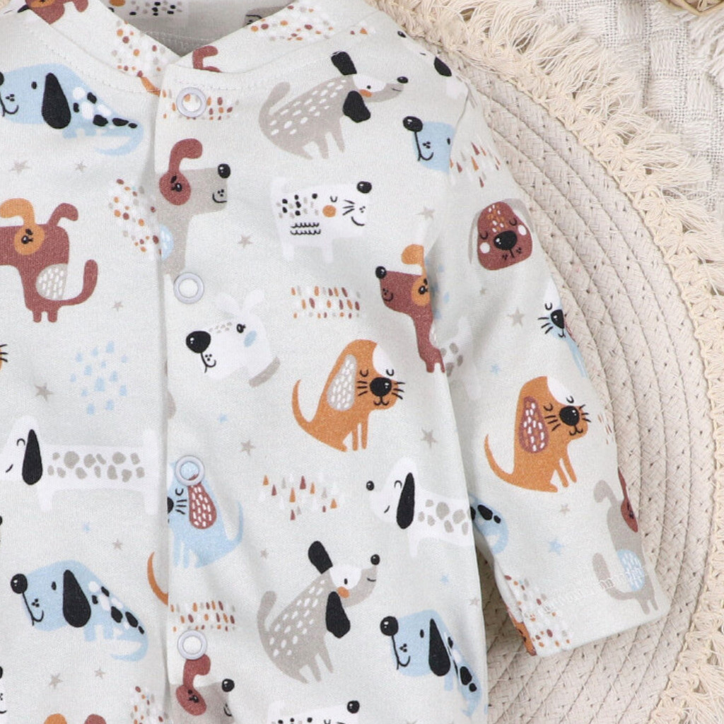 A Nini Dogs kollekció baba rugdalózója ideális viselet újszülöttek és kisbabák számára. A kedves kutyás minta játékossá teszi a megjelenést, miközben a praktikus kialakítás a mindennapokat könnyíti meg.