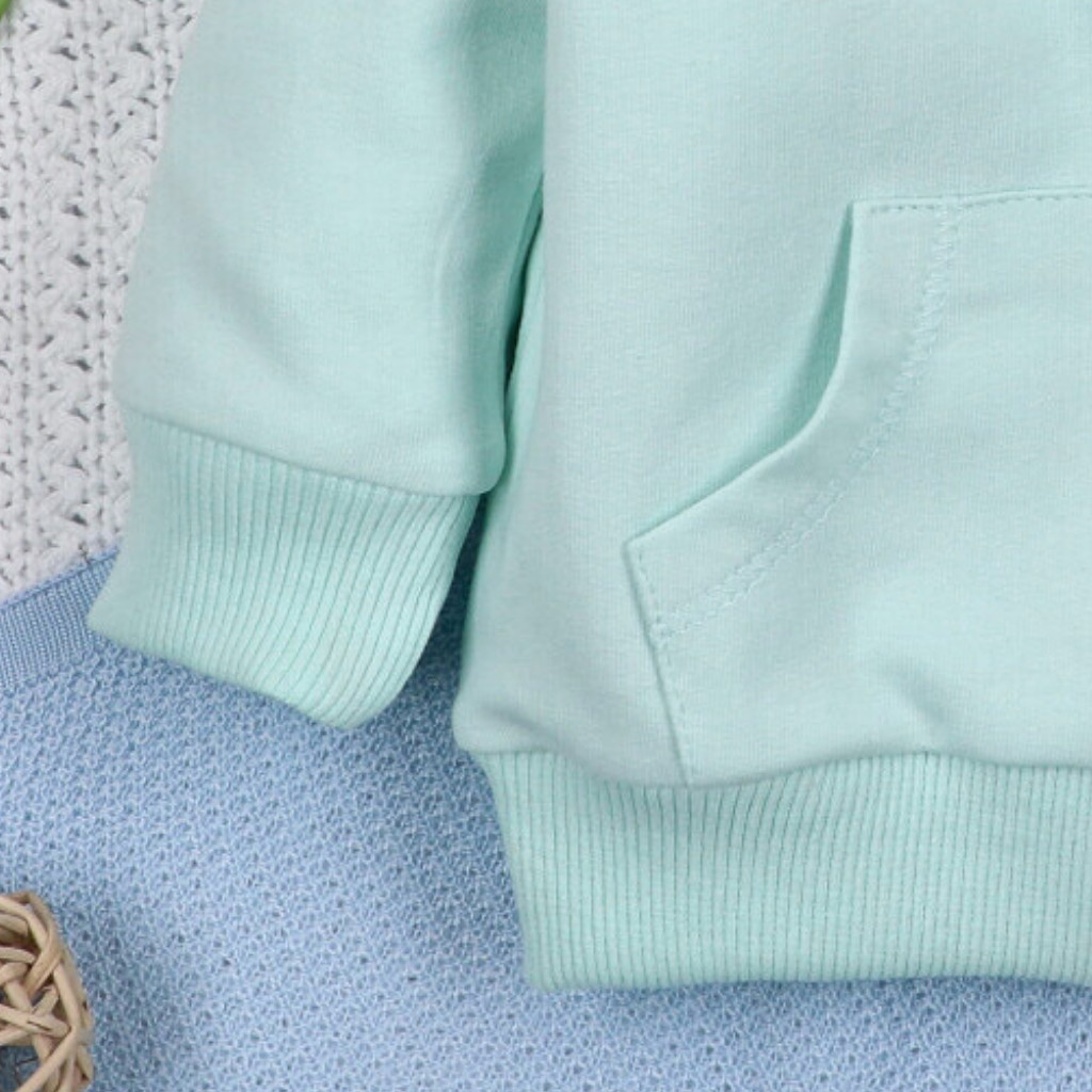 A NINI Dino Explorer kapucnis baba pulóver ideális választás a kisfiúk mindennapi ruhatárába. A puha pamutanyag és a kényelmes szabás lehetővé teszi, hogy a baba szabadon mozoghasson játék vagy séta közben. A letisztult menta szín és a kapucnis kialakítás modern, sportos megjelenést ad a ruhadarabnak.