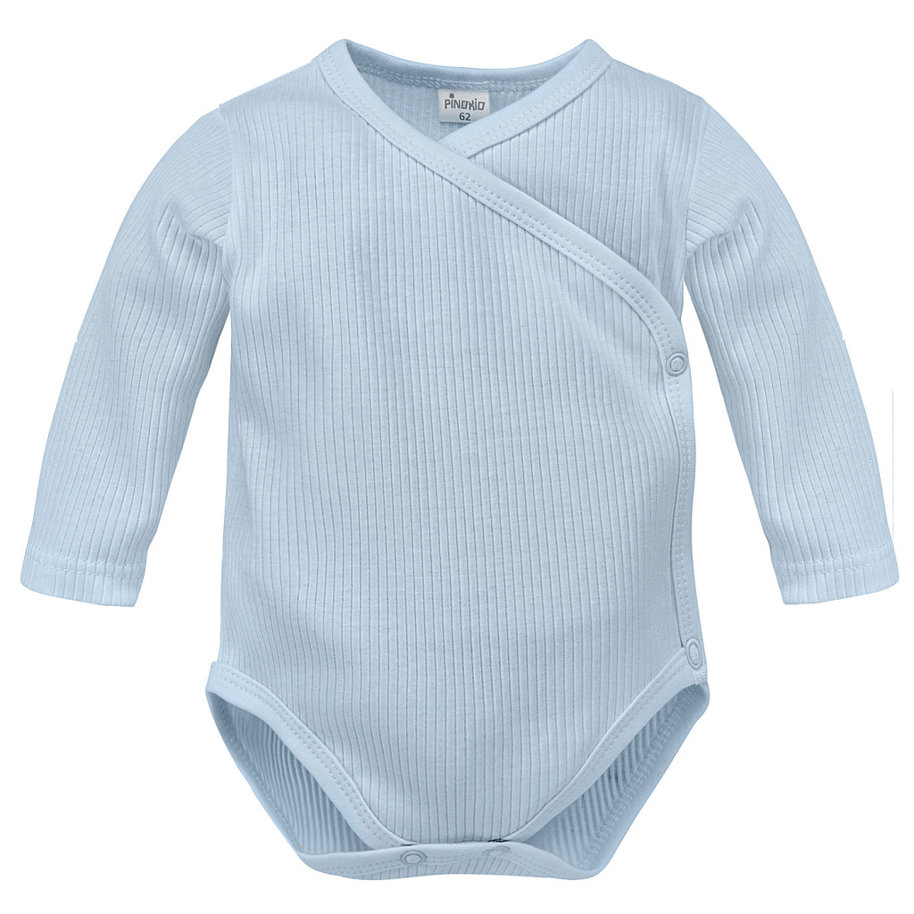 Pinokio - Lovely Day háromrészes bordázott baba body kék-fehér-szürke 56