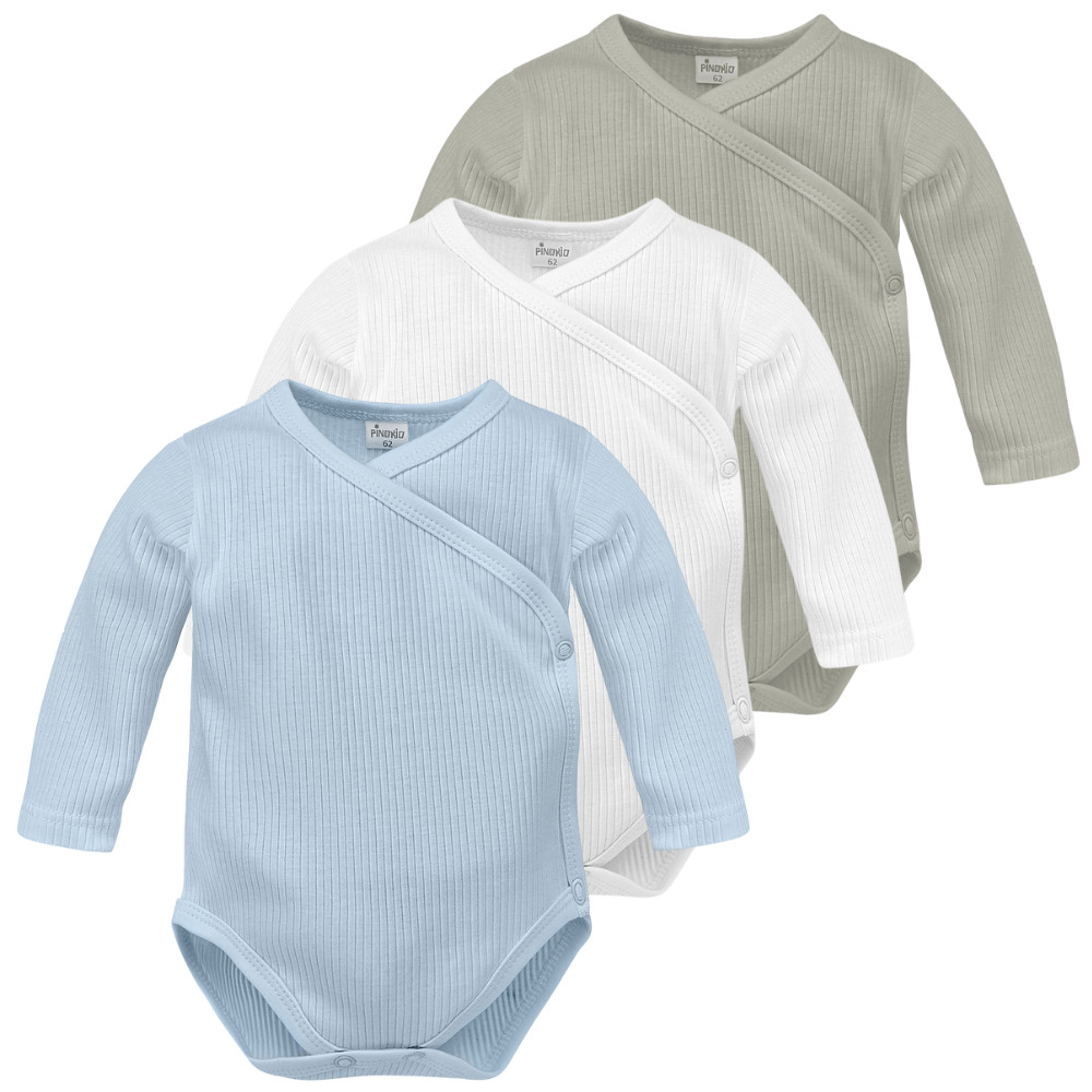 Pinokio - Lovely Day háromrészes bordázott baba body kék-fehér-szürke 62